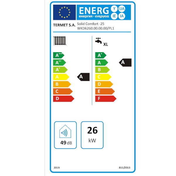 | Klasa sezonowej efektywności energetycznej ogrzewania pomieszczeń | A |