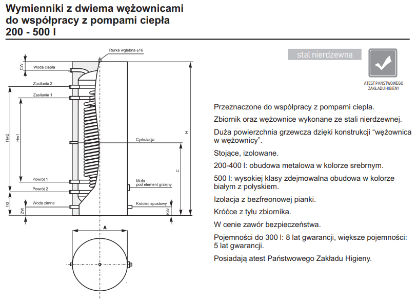 - Pojemność zbiornika od 200 do 500 l.