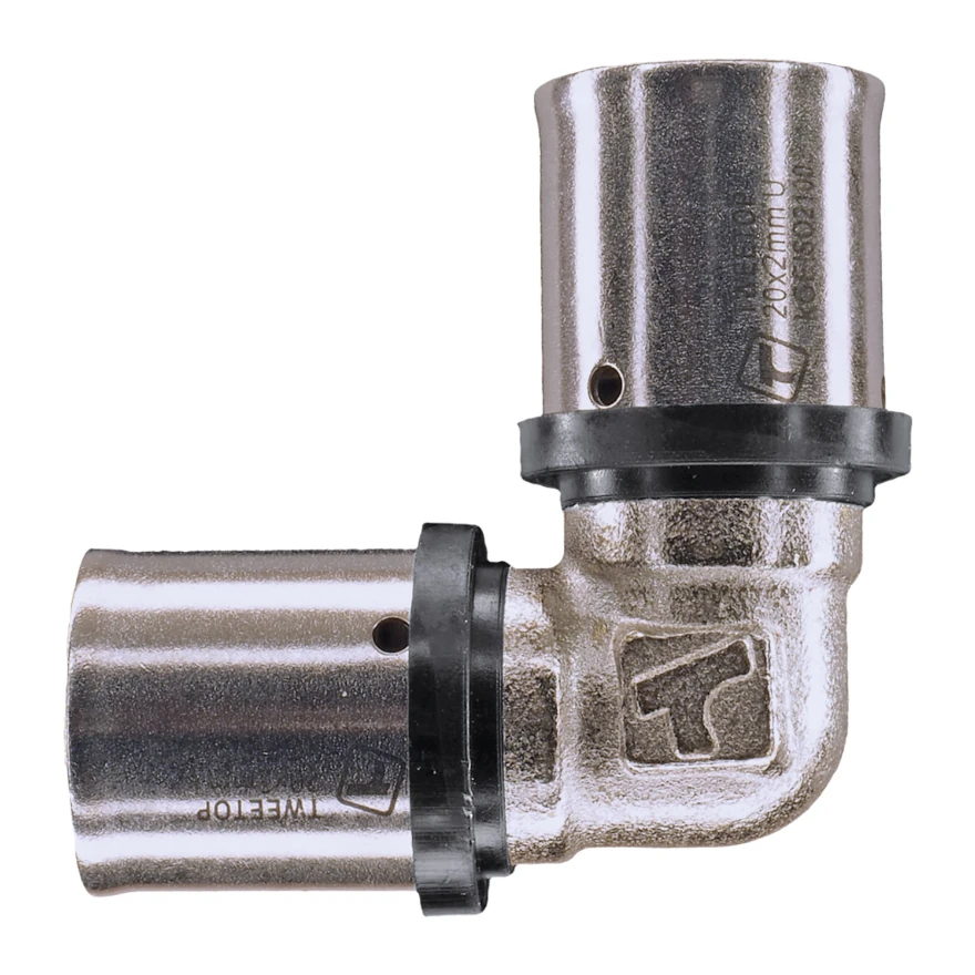 Podstawowym sposobem łączenia rur TweeTop jest użycie złączek zaprasowywanych. Kształtki tego typu są dostępne w średnicach 14-75mm. Połączenie rury z kształtką uzyskujemy, wgniatając (wprasowując) rurę w profil kształtki , w strefie złącza, za pomocą zaciskarki wyposażonej w szczęki typu U, dostosowane do typu kształtki. Szczelność komory połączeniowej gwarantują dwie uszczelki oringowe idealnie wkomponowane w strefę złącza. Dostępne średnice 14-75mm.