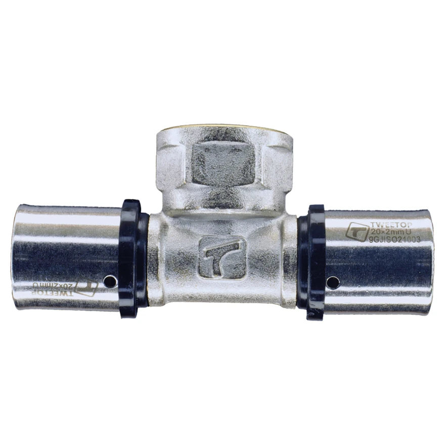 Podstawowym sposobem łączenia rur TweeTop jest użycie złączek zaprasowywanych. Kształtki tego typu są dostępne w średnicach 14-75mm. Połączenie rury z kształtką uzyskujemy, wgniatając (wprasowując) rurę w profil kształtki , w strefie złącza, za pomocą zaciskarki wyposażonej w szczęki typu U, dostosowane do typu kształtki. Szczelność komory połączeniowej gwarantują dwie uszczelki oringowe idealnie wkomponowane w strefę złącza. Dostępne średnice 14-75mm.