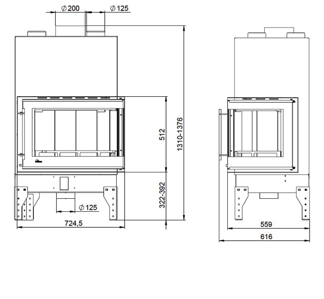 | Wyposażenie | dystrybutor gorącego powietrza: 4 x Ø125, palenisko wyłożone szamotem Rath, wkład idealny do domów z rekuperacją i DGP, nawiew powietrza na szybę, uszczelka drzwi z pamięcią kształtu, deflektory wermikulitowe, stalowe wymienniki, ogranicznik drewna, rusz |