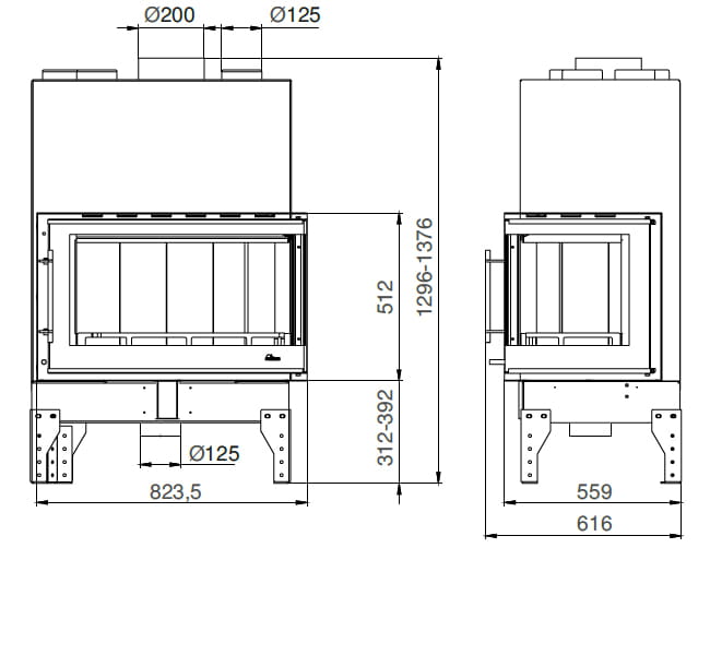| Wyposażenie | dystrybutor gorącego powietrza: 5 x Ø125, palenisko wyłożone szamotem Rath, wkład idealny do domów z rekuperacją i DGP, nawiew powietrza na szybę, uszczelka drzwi z pamięcią kształtu, deflektory wermikulitowe, stalowe wymienniki, ogranicznik drewna, rusz |