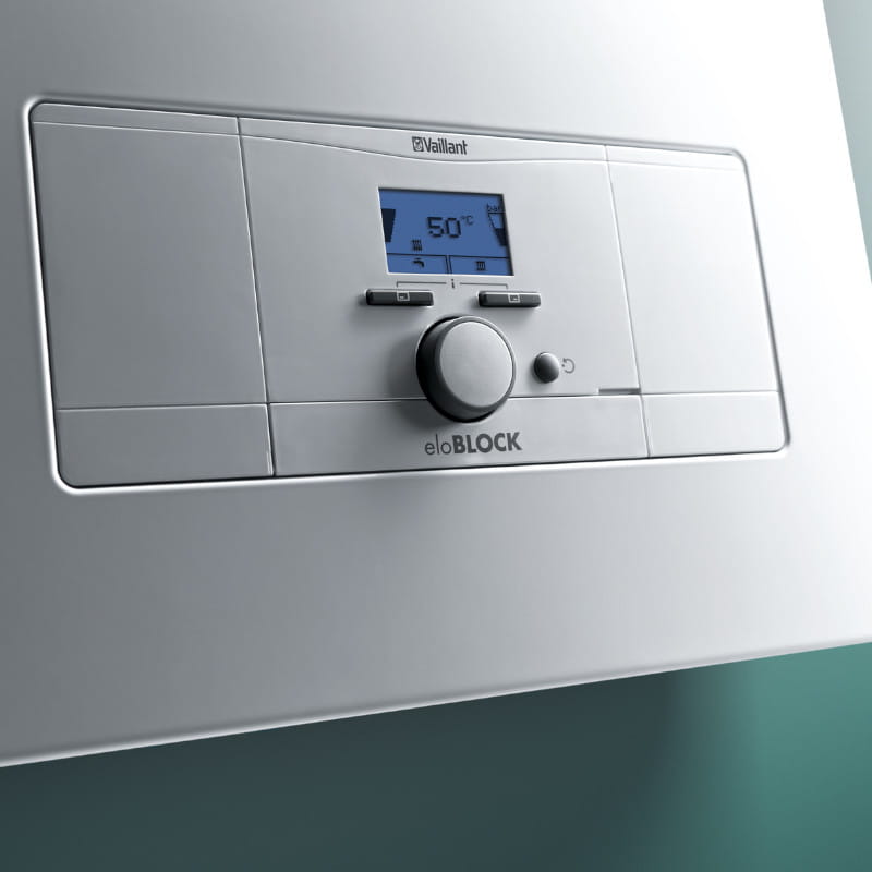 | Protokół komunikacyjny | Wbudowany protokół komunikacyjny pełni funkcję routera i umożliwia współpracę kotła eloBLOCK z innymi urządzeniami marki Vaillant w instalacji – np. zasobnikiem ciepłej wody, sterownikiem, pompą ciepła. |