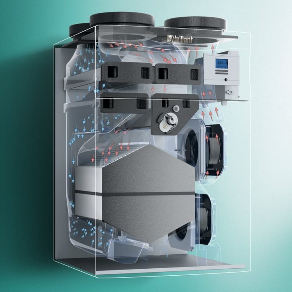 System wentylacji recoVAIR marki Vaillant składa się z urządzenia wentylacyjnego z wymiennikiem ciepła, także w wersji entalpicznej, układu sterowania sensoCOMFORT VRC 720, wbudowanego obejścia i innowacyjnego układu nawiewu i wywiewu. Dzięki regulowanemu obejściu można latem pominąć odzysk ciepła. Zastosowanie sensoCOMFORT VRC 720 pozwala na sterowanie rekuperacją i systemem grzewczym za pomocą jednego regulatora (np. aroTHERM lub ecoTEC + recoVAIR).