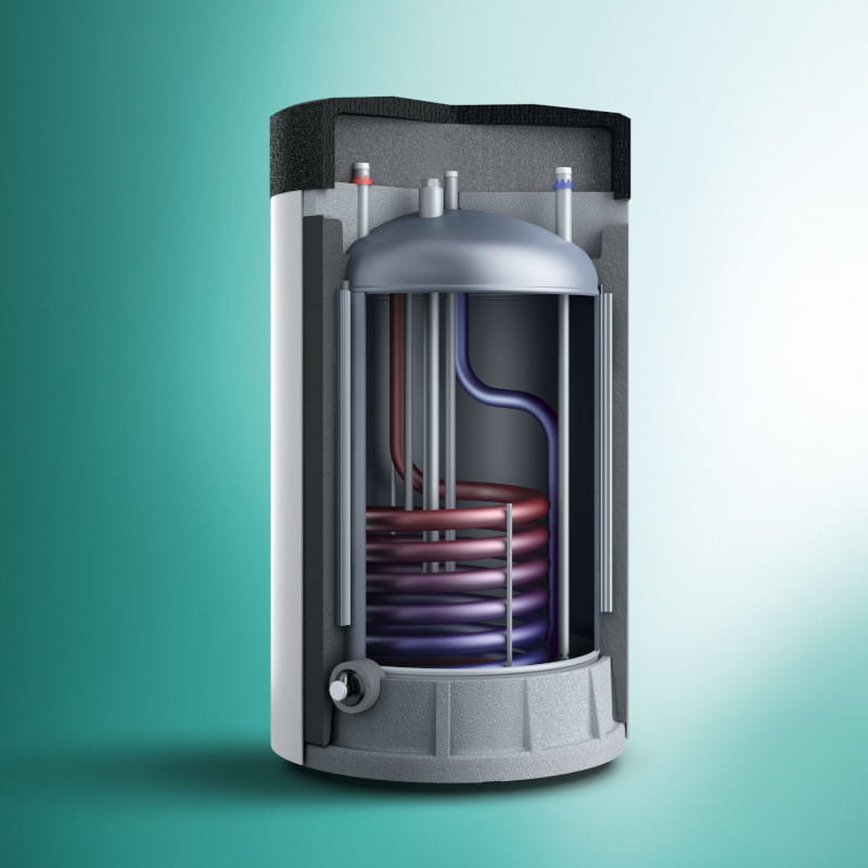 Tak wysoki stopień izolacyjności zasobników VIH R/6 M jest możliwy dzięki zastosowaniu unikalnego rozwiązania płaszcza próżniowego opatentowanego przez firmę Vaillant. Płaszcz próżniowy ogrubości 15 mm charakteryzuje się współczynnikiem przenikalności cieplnej odpowiadającym 15 cm standardowej izolacji z piany poliuretanowej, co znacznie redukuje koszty eksploatacji. Do instalacji zawierającej zasobnik VIH R/6 można również zastosować opcjonalną pompę cyrkulacyjną w celu podwyższenia komfortu ciepłej wody użytkowej. Takie rozwiązanie zalecane jest zwłaszcza w bardziej oddalonych miejscach poboru.