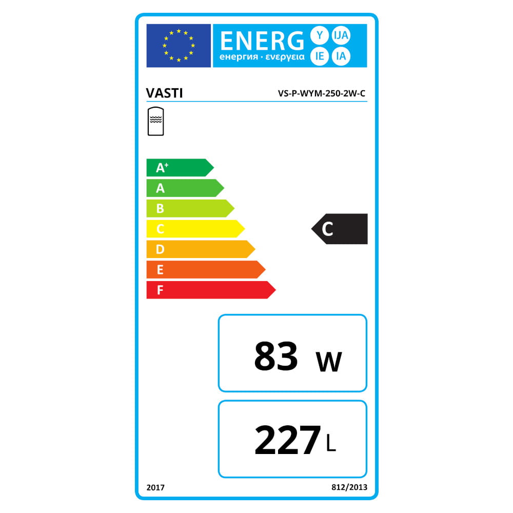 100 l, 120 l, 150 l, 200 l, 250 l oraz 300 l oraz dwóch klasach energetycznych B (zbiorniki CWU 100 l – 150 l) i klasie energetycznej C (zbiorniki CWU 200 l – 1000 l).
