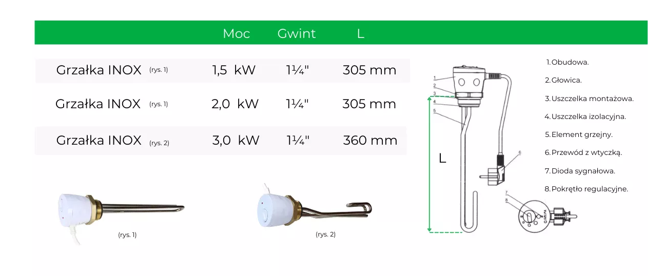 VASTI KOMPLET ELEKTRYCZNY INOX 1,5KW VSS-ZN00-GRZ5/4″-1,5