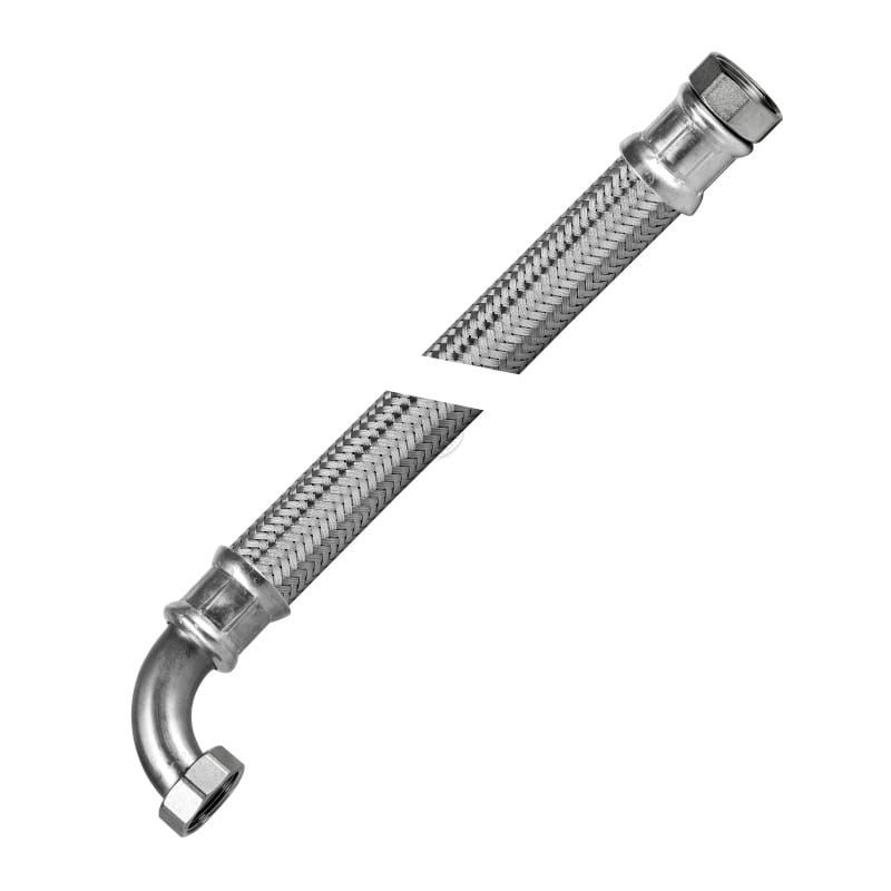 VERO TERA (DN25) WĄŻ STALOWY W OPLOCIE NIERDZEWNYM NAKRĘTNO – KOLANKOWY (GWxGW 90°) 1″ X 1″ 50 CM T50NK