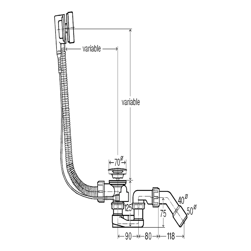 VIEGA SIMPLEX- SYFON WANNOWY Z KORKIEM AUTOMATYCZNYM, 630.001