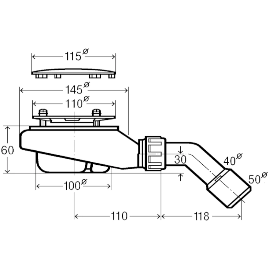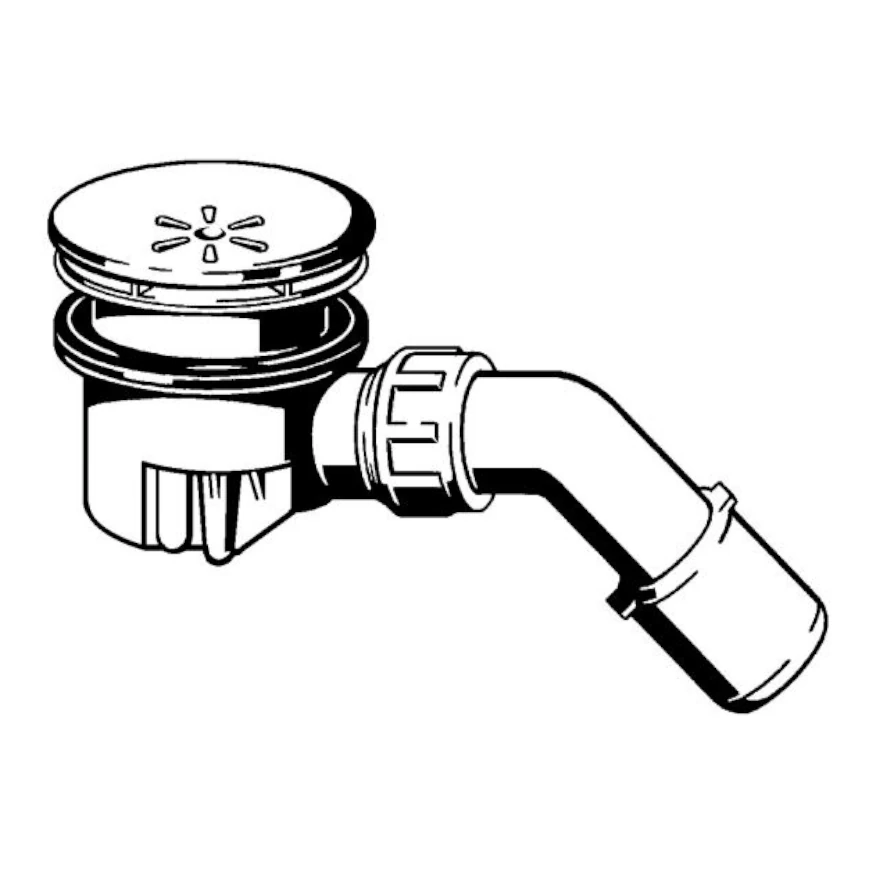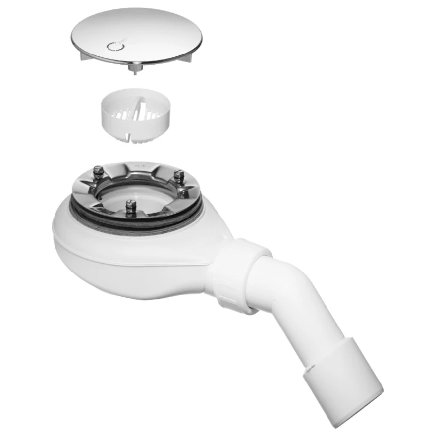 Kołpak chromowany, syfon wyjmowalny, łuk odpływowy45°, sitko