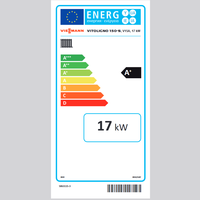 Vitoligno 150-S dopasowuje swoją moc w sposób ciągły do aktualnego zapotrzebowania na ciepło. Regulator spalania, z sondą Lambda i czujnikiem temperatury spalin, rejestruje zawartość tlenu i temperaturę spalin. Zapewnia to niską emisję i wysoką sprawność do 93,1 procent. Dzięki temu Vitoligno 150-S może w bardzo ekonomiczny sposób pozyskiwać ciepło użytkowe z polan.