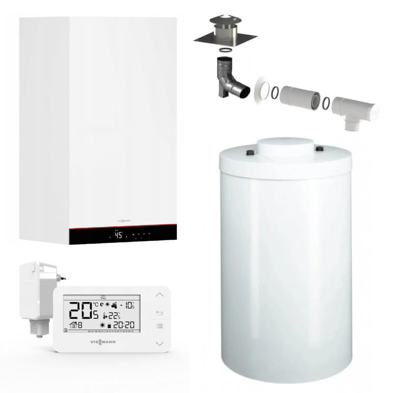 VIESSMANN PAKIET KOCIOŁ 1 FUN. VITODENS 050-W B0HA 19 KW + ZASOBNIK VITOCELL 200-V 140L INOX + TERMOSTAT BSOP + ZESTAW W SZACHT 60/100 Z028069