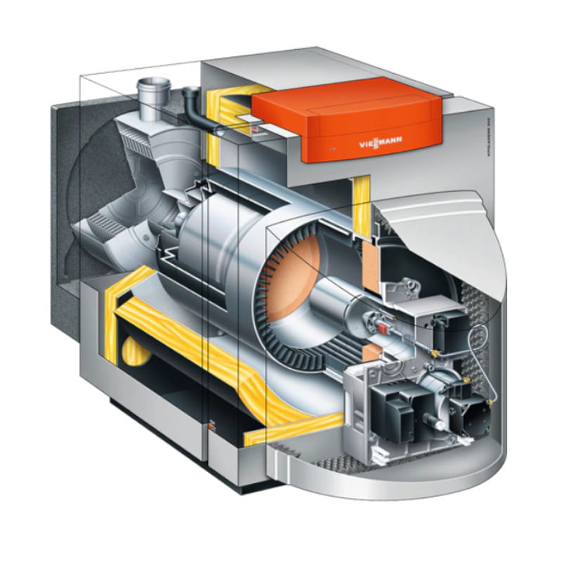 Wbudowany w komorze spalania tłumik powoduje, że kocioł Vitoladens 300-T jest bardzo cichy także w trakcie eksploatacji.