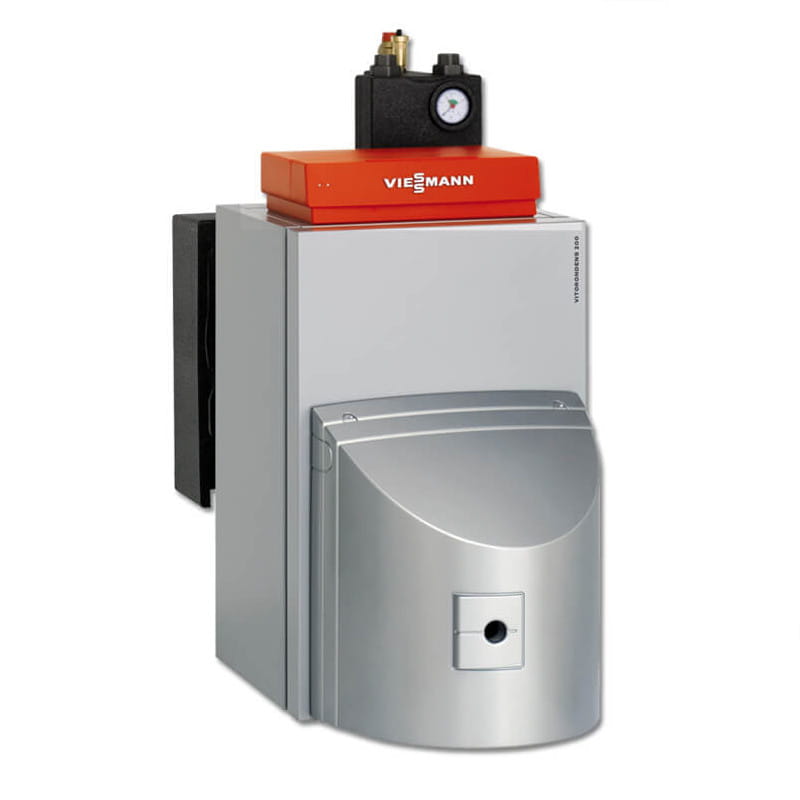 Stojący, olejowy kocioł kondensacyjny Vitorondens 200-T o mocy 53,7 kW.