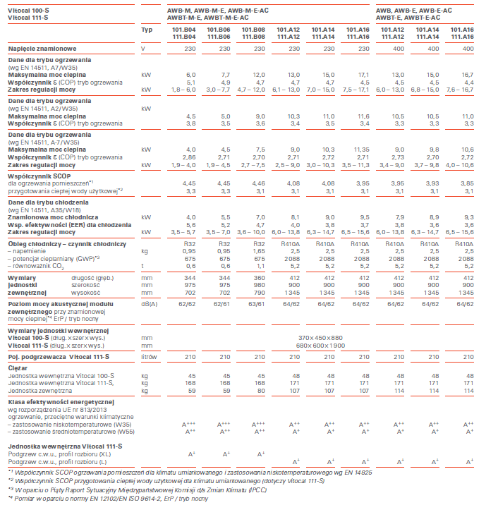VITOCAL 100-S / 111-S -parametry techniczne