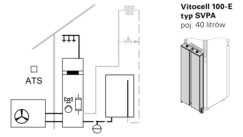 - W zakresie dostawy hydrauliczny zestaw przyłączeniowy natynkowy wersja lewa lub prawa oraz bufor wody grzewczej Vitocell 100-E SVPA do integracji zurządzeniem (montaż szeregowy) izawór bypass.