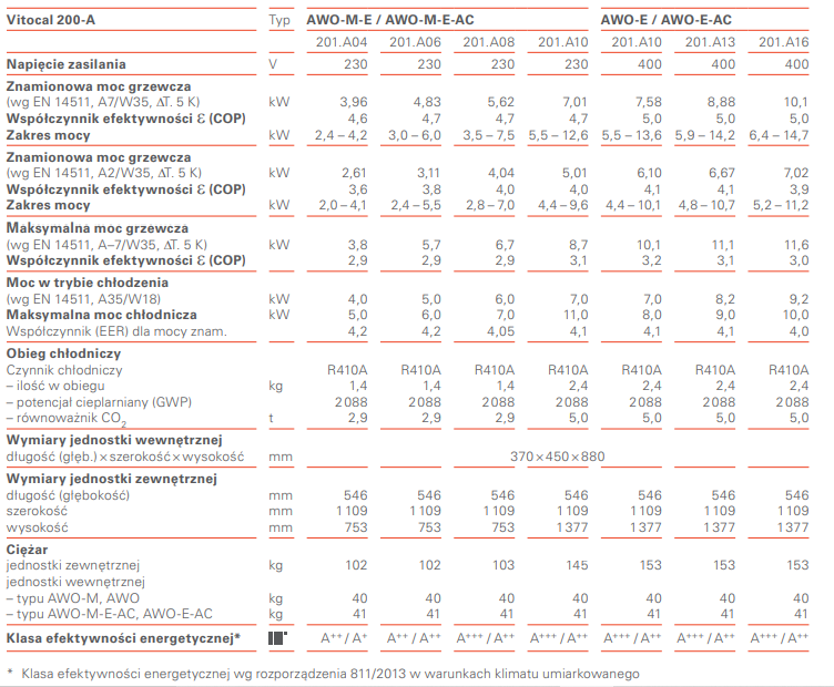 VITOCAL 200-A -parametry techniczne