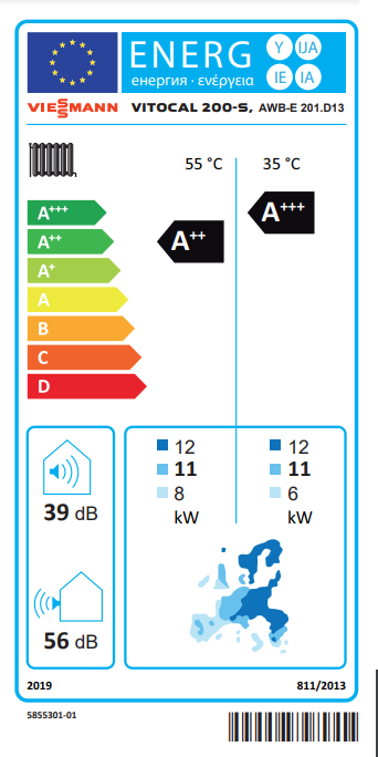 - Pompa ciepła powietrze–woda Vitocal 200-S typu Split, o maksymalnej mocy grzewczej 5,7do 14,7 kW (przy A7/W35)