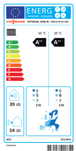 - Pompa ciepła powietrze–woda Vitocal 200-S typu Split, o maksymalnej mocy grzewczej 5,7do 14,7 kW (przy A7/W35)