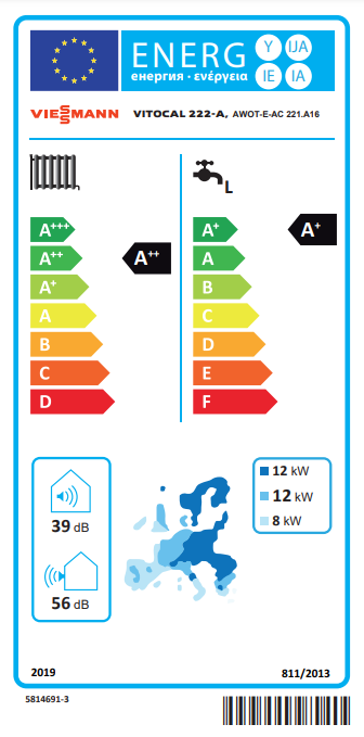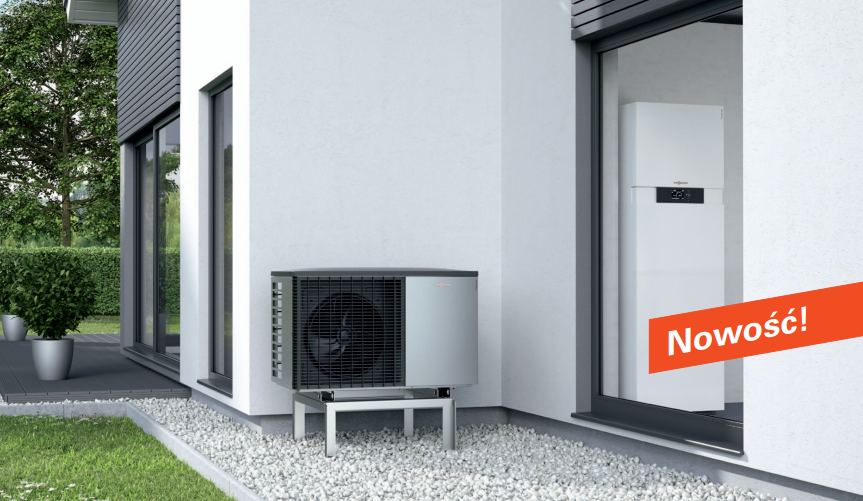 - Kompaktowa pompa ciepła powietrze–woda Vitocal 222-A typu monoblok, omaksymalnej mocy grzewczej od 5,7do 14,7 kW (A7/W35) oraz 4,2 do 12,0kW (przy A2/W35)