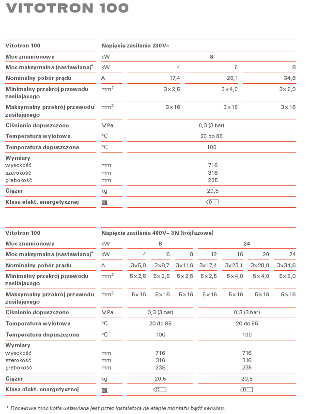 VITOTRON 100 -dane techniczne