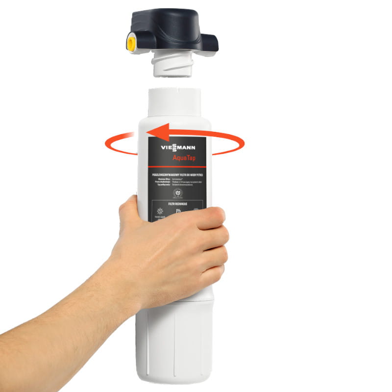 Wymienny wkład filtrującyAQUATAP.Wymiana przewidziana jest co 6-12 miesięcy lub po uzdatnieniu 7.500 litrów wody.