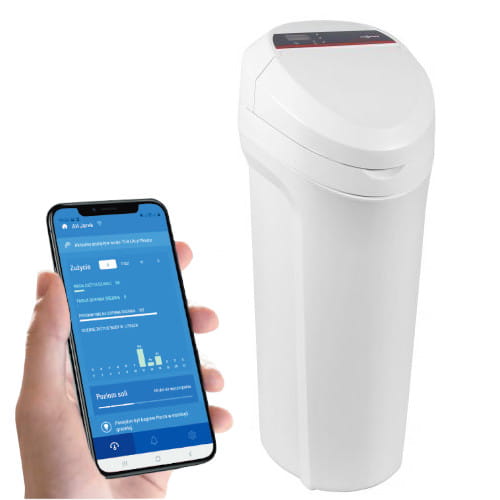 - Urządzenie obfitujące w unikalne funkcje panelu sterowania i udogodnienia, zwiększające komfort użytkowania urządzenia oraz zmniejszające zużycie soli do regeneracji złoża.
