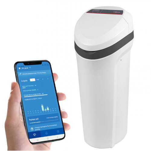 - Z poziomu smartfona masz dostęp do informacji na temat zużycia wody w domu oraz pracy urządzenia