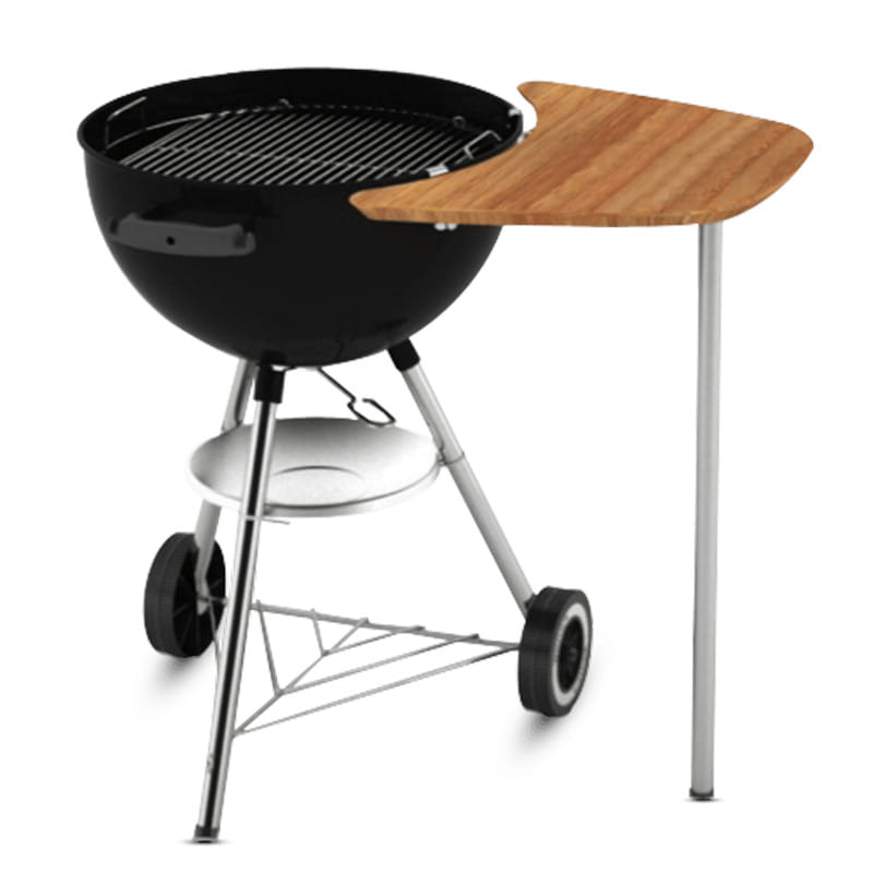 Bądź ze swoimi gośćmi przy grillu również podczas ostatnich przygotowań. Nie musisz odchodzić od ognia, żeby pokroić chleb czy wymieszać sałatkę – bambusowy stolik boczny zapewnia dodatkową powierzchnię roboczą obok grilla węglowego, stabilnie wspartą na metalowej nodze.