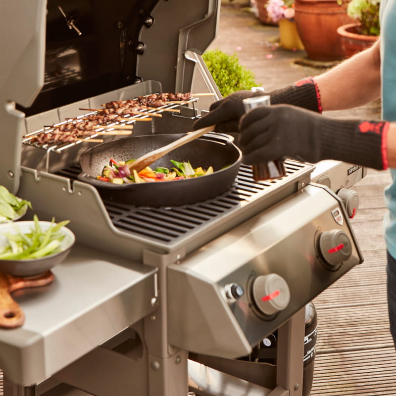 Wejdź dalej do świata grillowania z grillem gazowym Spirit II E-310. Ten trzypalnikowy grill ma obszerną powierzchnię gotowania, wygodne stoliki boczne na tace oraz haczyki na narzędzia do odwieszania szczypiec i łopatki. System grillowania GS4 o dużej mocy oraz kompatybilność z iGrill zapewnią Ci sukces na niwie BBQ.