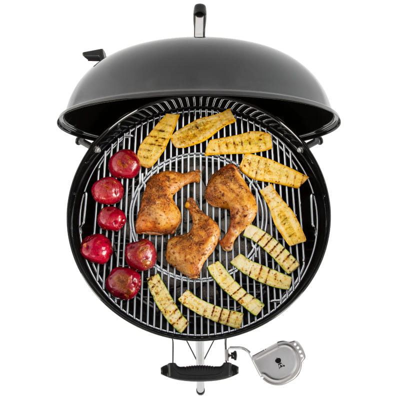 Opanuj sztukę grillowania na węglu drzewnym za pomocą grilla Master-Touch. Ruszt do pieczenia Gourmet BBQ System pozwala na przygotowanie śniadania, gotowanie chili lub zup oraz pieczenie perfekcyjnie chrupiącej pizzy. Dzięki regulowanej wentylacji misy, którą można ustawić na „wędzenie”, masz jeszcze większą kontrolę nad temperaturą wewnątrz grilla, by wędzić i piec. Wyposażony w praktyczny uchwyt pokrywy Tuck-Away oraz wygodny system czyszczenia One-Touch, grill Master-Touch wprowadza grillowanie na węglu do codziennego życia.