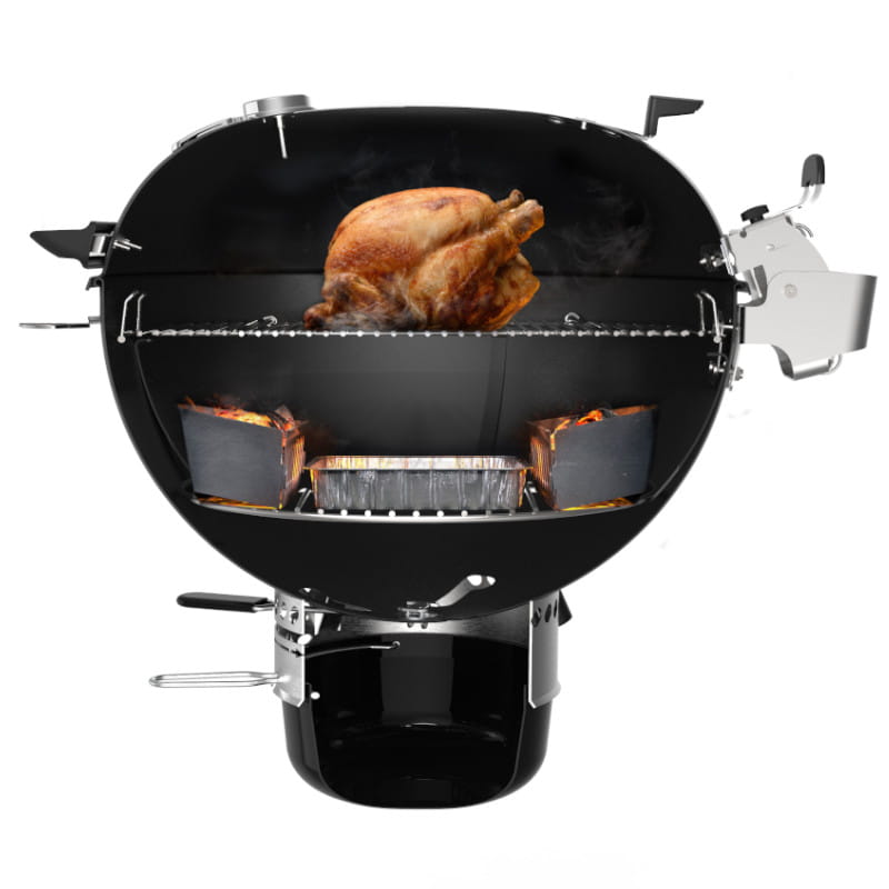 Legendarny Weber Kettle zyskał nową odsłonę. Na grillu węglowym Master-Touch Premium można przypiec idealne steki, a potem przekształcić go bez trudu w wędzarkę, by nieśpiesznie wędzić w niskiej temperaturze żeberka lub łopatkę wieprzową. Wyposażony w nowe funkcje, takie jak wygodna pokrywa na zawiasach i pierścień węglowy zapewniający oszczędne zużycie paliwa, Master-Touch Premium umożliwia grillowanie na wszystkie sposoby.