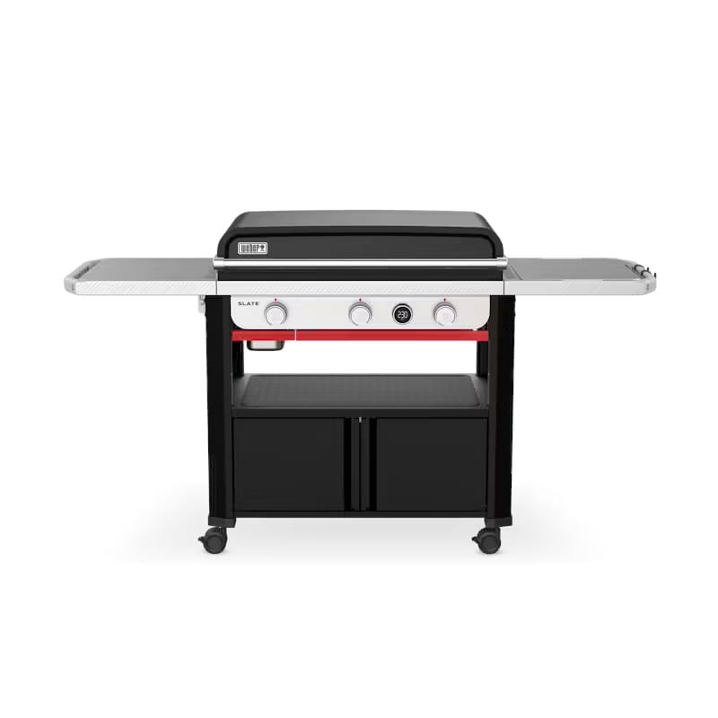 Czerp większą radość z grillowania za pomocą przełomowej płyty Weber® SLATE GPSB 76 cm Premium z cyfrowym wyświetlaczem temperatury oraz dużą powierzchnią przyrządzania, która osiąga temperaturę ponad 260°C i zapewnia równomierne rozprowadzanie ciepła na całej przestrzeni, co stanowi gwarancję spójnych wyników grillowania niezależnie od miejsca ułożenia na płycie. Nieprzywierająca powierzchnia przyrządzania pokryta emalią porcelanową umożliwia przyrządzanie wielu potraw, w tym soczystych smashburgerów, aromatycznych dań stir-fry czy też pięknie opieczonych owoców morza i warzyw. Ponadto dzięki systemowi przygotowywania, przyrządzania i przechowywania Weber Works masz pod ręką przybory do grillowania i czyszczenia. Możesz także przenosić składniki i przyprawy z kuchni na płytę, przekształcić stolik boczny w stanowisko przygotowywania oraz przechowywać przybory w szczelnie zamkniętych pojemnikach (akcesoria sprzedawane oddzielnie).