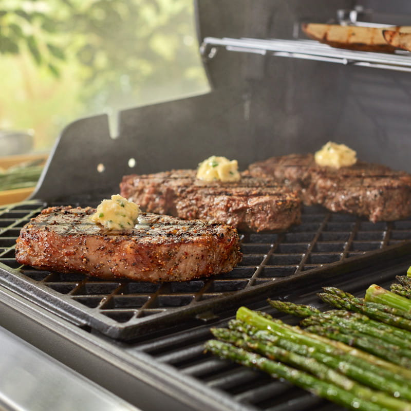 Odkryj nowe sposoby dogadzania kubkom smakowym i oczom przyjaciół. Dobry stek, antrykot z kością czy polędwica z pięknie przypieczonymi wzorkami – nic nie może się z tym równać. Żeliwny ruszt do przypiekania bardzo silnie się nagrzewa, dzięki czemu możesz tworzyć na mięsie niezwykle apetyczne i fotogeniczne wzorki!