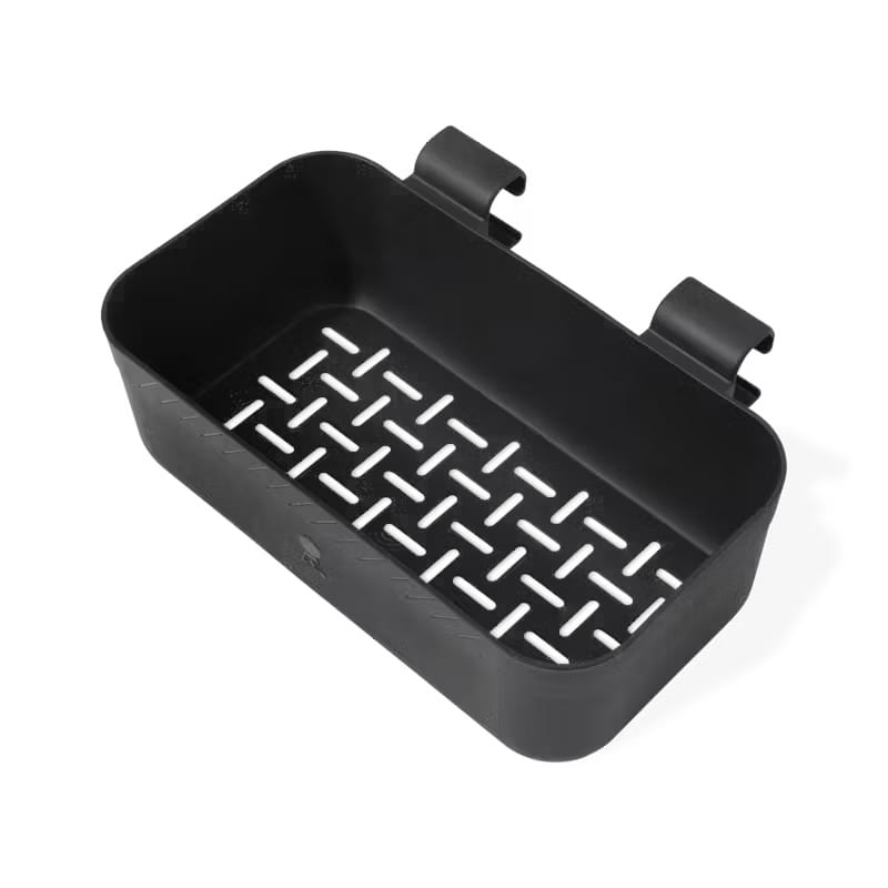 Pojemnik na przyprawy Weber Works™ umożliwia przechowywanie sosów i przypraw przy grillu w zasięgu ręki. Wystarczy zatrzasnąć go na szynie Weber Works™, aby butelki i duże shakery były pod ręką, a stolik boczny pozostał wolny do przygotowywania i serwowania.