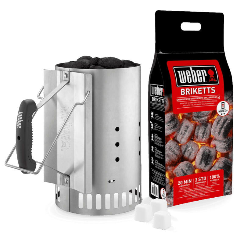 • Zawiera 2 kg brykietów Weber®, 3 rozpałki oraz komin do rozpalania Weber®