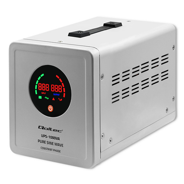 Zasilacze UPS online marki Qoltec tostabilna pozbawiona zakłóceń czysta energia o sinusoidalnym kształcie. To pełna ochrona twoich urządzeń, dziękipodwójnej konwersji, która najpierw przekształca prąd przemienny zasilania sieciowego na prąd stały, a następnie na prąd przemienny, cozapewnia najwyższy poziom jakości zasilania i zabezpiecza przez potencjalnymi zakłóceniami w sieci takimi jak spadki napięcia, zaniki energii, przepięcia i awarie.