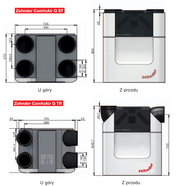 | Układ króćców | pionowy, prawy (nawiew i wywiew po prawej stronie) |