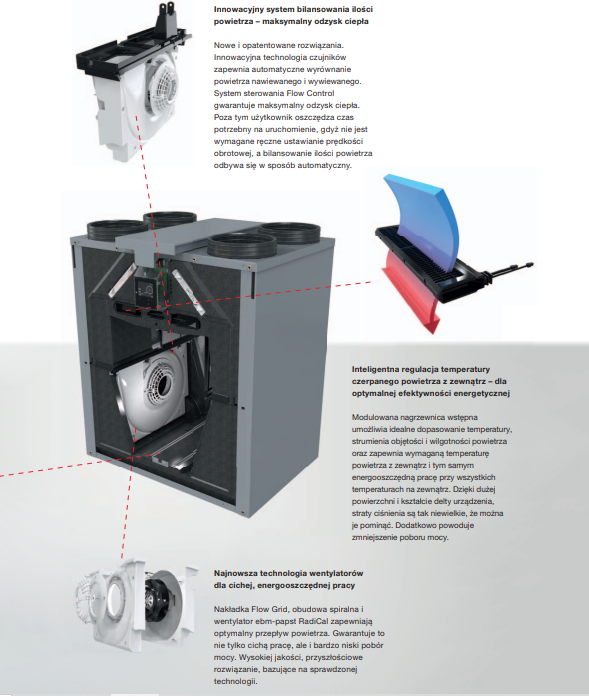 Innowacyjny system bilansowania ilości powietrza – maksymalny odzysk ciepła;Inteligentna regulacja temperatury;Najnowsza technologia wentylatorów