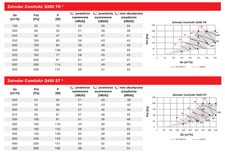 ZEHNDER COMFOAIR – parametry techniczne