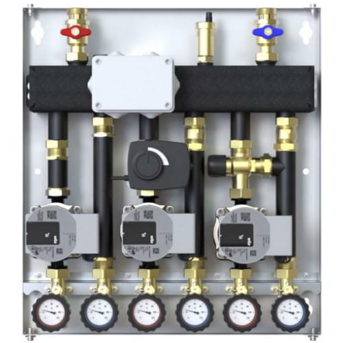 ZESTAW HYDRAULICZNY DEFRO DCM 20 3-OBIEGI (1 GR. BEZPOŚREDNIA, 1 GR. Z ZAWOREM MIESZAJĄCYM I SIŁOWNIKIEM, 1 GR. Z ZAWOREM TERMOSTATYCZNYM), POMPY WILO PARA 15/6 DCM-WP-13