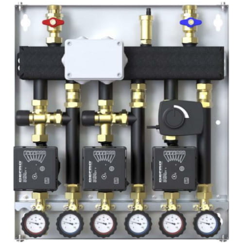 ZESTAW HYDRAULICZNY DEFRO DCM 20 3-OBIEGI (2 GR. Z ZAWOREM TERMOSTATYCZNYM, 1 GR. Z ZAWOREM MIESZAJĄCYM I SIŁOWNIKIEM), POMPY ECOFLOW ENERGY PLUS 4/6 DCM-ECF-15