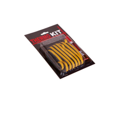 Zestaw naprawczy THERMO KIT (sznur płaski 10×3 mm + klej) do uszczelniania szyb wkładów kominkowych. Sznur o długości 2m.